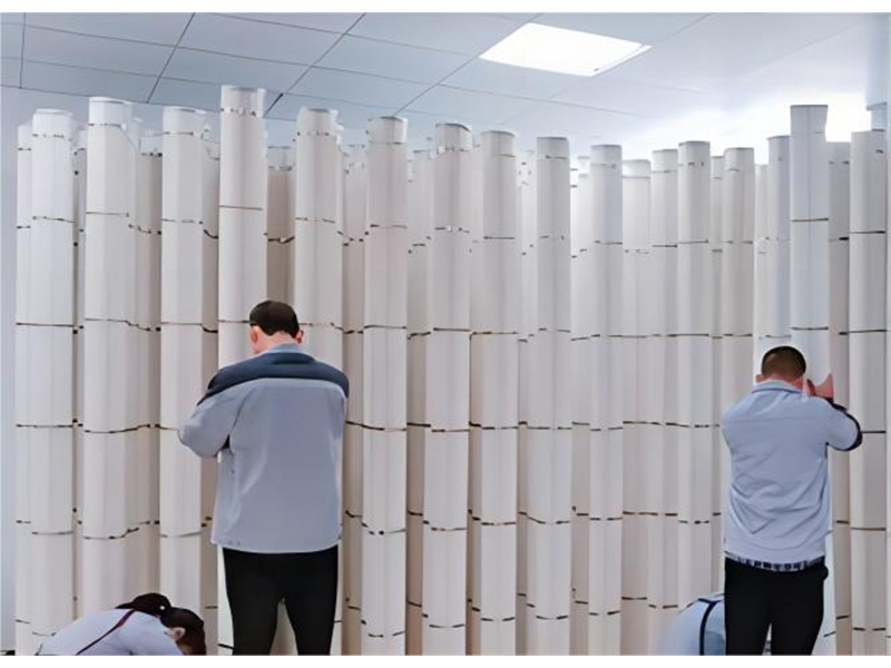 除塵濾筒結構是由一定長度挺括的濾料經拍波機打折成形,端蓋、護網、濾料首尾粘合而成的星形過濾筒。比傳統的布袋相比同樣的高度,過濾表面面積提高 2-3 倍。